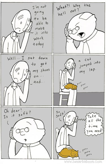 Next time your partner asks you to do something while your cat is purring on your lap, just say : « Yeaaah I'm sorry, I can’t stand up : I am in a middle of a purr therapy ».