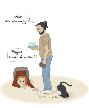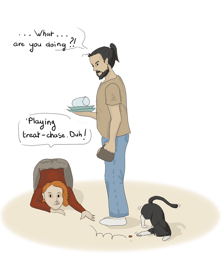 That said, if you do not have any cat toy within reach and no way to make one, there are other interactive games you can play with your cat: hide and seak, treat chase, bonneteau etc.