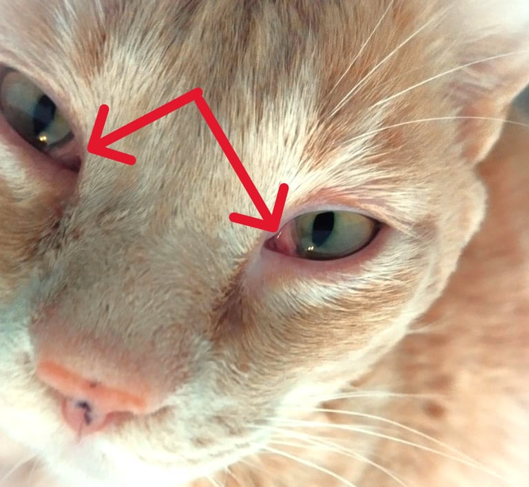 - si la 3 ème paupière (membrane nictitante) de votre chat est visible,