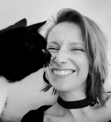 Finalement, ayant fait le tour de l’expérience ‘expat’, je suis rentrée en France et ai ouvert mon entreprise de comportementaliste félin. Je partage ma vie avec Crapule, une boule d'amour récupéré dans une ferme et peu familiarisé aux humains (à part nous) et Bouddha, un chat errant sauvé qui avait la très mauvaise habitude d'attaquer et de mordre mais qui est à présent la définition d'un chat-peluche. Miette, ma minette carafon à qui je dois en partie cette reconversion, nous a quitté en décembre 2024, emportant avec elle un petit morceau de mon cœur. Nous sommes aussi famille d'accueil de temps en temps.